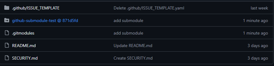 위 내용을 푸쉬하면 submodule이 등록된것을 확인 할 수 있다.