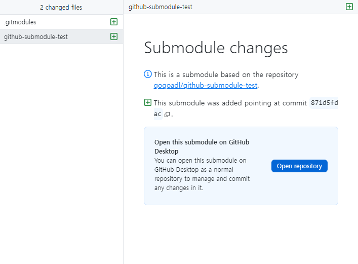 또한 submodule을 추가 했던 레포지토리 자체의 변경사항도 있다고 나온다.