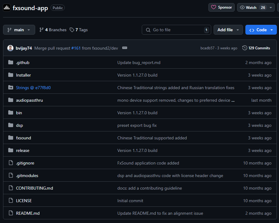 예전에 한글화에 기여했었던 서비스인 fxsound의 경우 서비스의 문자열 데이터를 저장하고 있는 Strings 레포지토리를 submodule로 관리하는 것을 알 수 있다.