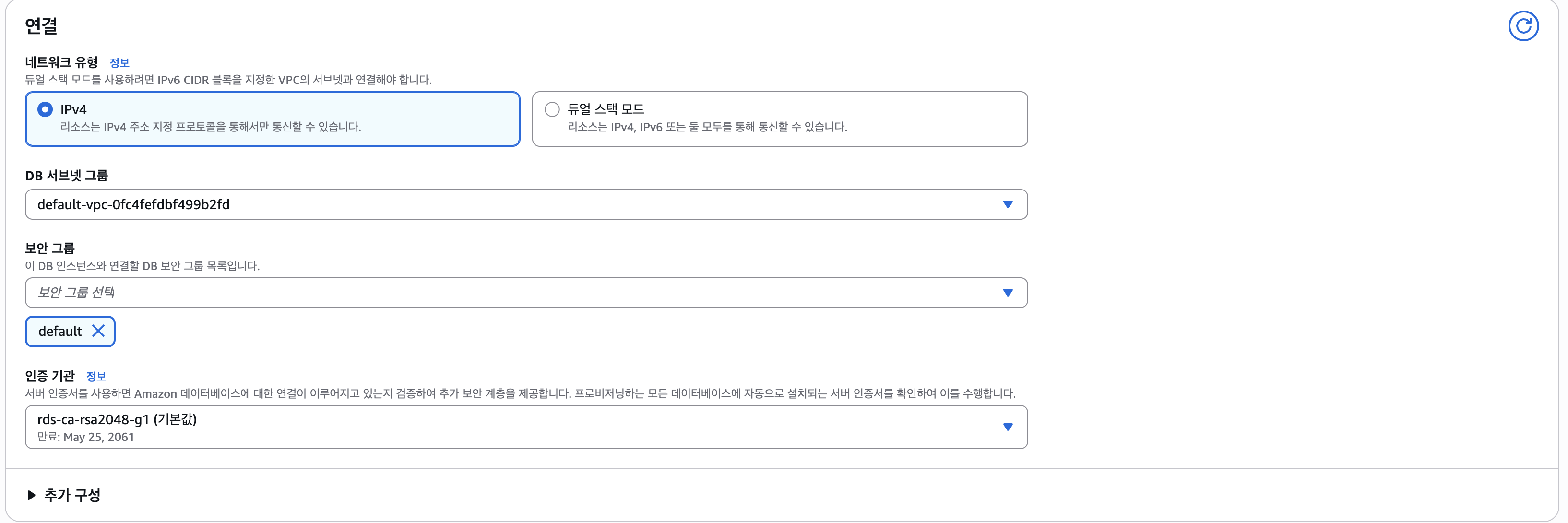 RDS 인스턴스 생성의 경우, "연결" 카테고리를 제외하고는 네트워크와 큰 관련이 없기 때문에, "연결" 카테고리만을 대상으로 글을 작성합니다.