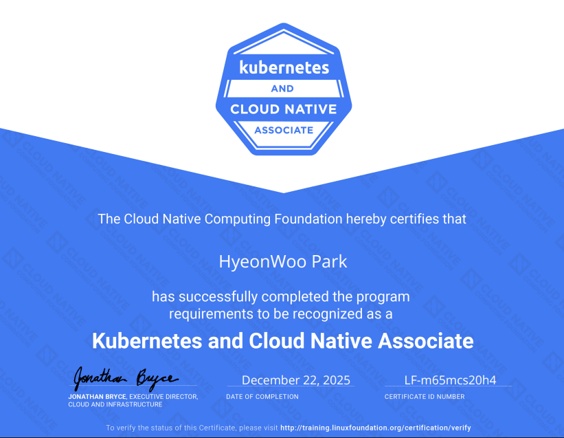 - 자격증명: KCNA (Kubernetes and Cloud Native Associate)