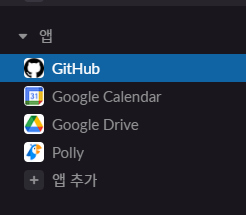 이후 검색창에 Github 검색 후 선택해준다. 그러면 위처럼 앱 목록에 GitHub가 추가된다.