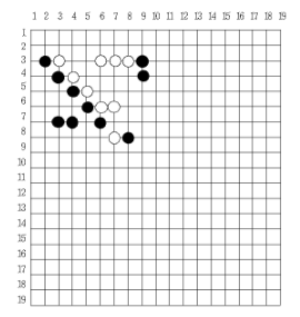 19줄에 각 줄마다 19개의 숫자로 표현되는데, 검은 바둑알은 1, 흰 바둑알은 2, 알이 놓이지 않는 자리는 0으로 표시되며, 숫자는 한 칸씩 띄어서 표시된다.